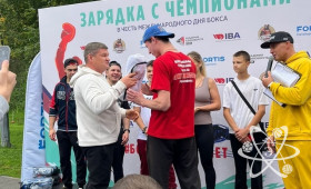 На зарядке присутствовали наши боксеры Иван Безруков, Антон Брюханов, Андрей Захаров, Елизавета Климова